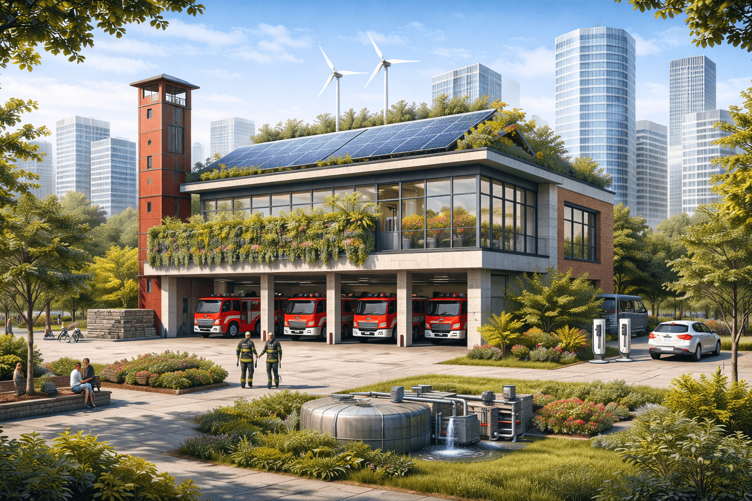 Ένας πυροσβεστικός σταθμός μπορεί να γίνει πιο αποδοτικός, πιο υγιής για το προσωπικό και πιο οικονομικός στη λειτουργία του, με παρεμβάσεις που ξεκινούν από το κέλυφος και φτάνουν έως την ενέργεια και το νερό.