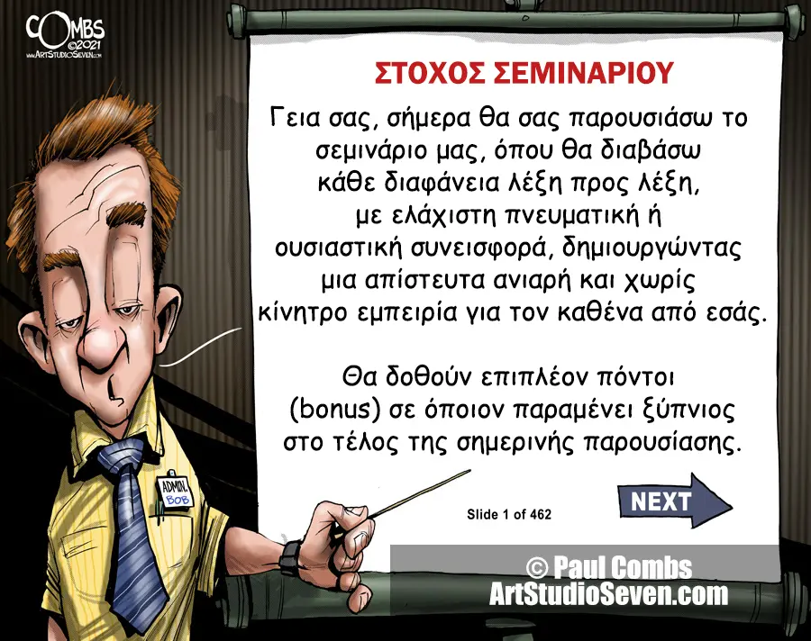 Είναι λυπηρό να βλέπεις έναν εκπαιδευτή να έχει μείνει 20 χρόνια πίσω τόσο στις παρουσιάσεις του όσο και στην τεχνογνωσία του, πεπεισμένος ότι αυτό είναι το σωστό και ότι κάποια πράγματα δεν αλλάζουν.