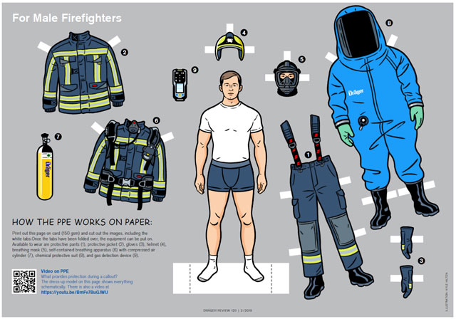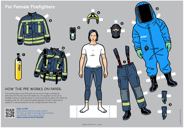 Οι πυροσβέστες χρειάζονται προστασία από τις φλόγες, τους καπνούς την αιθάλη και άλλες επικίνδυνες ουσίες όταν καλούνται να αντιμετωπίσουν ένα συμβάν, γι ‘αυτό και χρησιμοποιούν ατομικό προστατευτικό εξοπλισμό (ΜΑΠ): προστατευτικά παντελόνια (1) και επενδύτη (2), γάντια (3) και κράνος (4). Κατά τη διάρκεια μιας κατάσβεσης, φορούν επίσης μάσκα προσώπου (5) και αναπνευστική συσκευή (6) με φιάλη πεπιεσμένου αέρα (7). Εάν συμμετάσχουν σε περιστατικό με επικίνδυνες χημικές ουσίες, φορούν επίσης χημική στολή προστασίας (8) και χρησιμοποιούν και ανιχνευτή πολλαπλών αερίων (9).