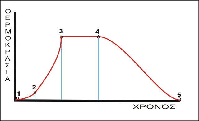 Το γράφημα που ακολουθεί (εικόνα 1) απεικονίζει την εξέλιξη πυρκαγιάς σε διαμέρισμα[1] συναρτήσει θερμοκρασίας και χρόνου, με δεδομένο ότι δεν υπάρχει εμπόδιο στην εισροή του αέρα στο χώρο. Στο γράφημα διακρίνουμε τέσσερεις περιοχές που θα μας απασχολήσουν στην μελέτη της φωτιάς.