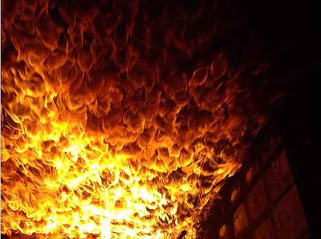 - ακούγονται οι χαρακτηριστικοί ήχοι της φωτιάς που βρίσκεται σε εξέλιξη.