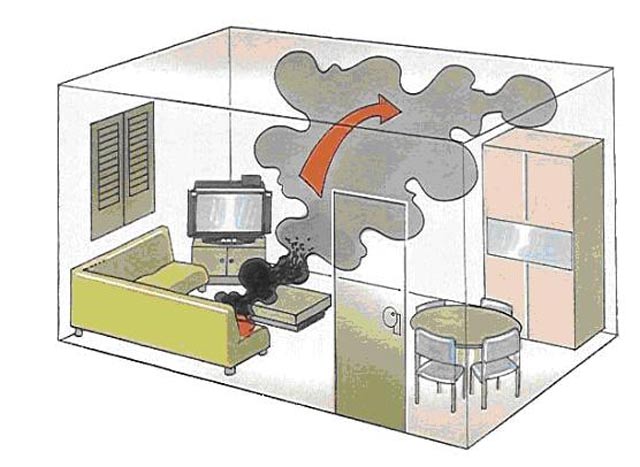 - Να αναγνωρίζεται η πυρόλυση των αντικειμένων εντός του χώρου που αποτελεί σημάδι της τεράστιας ποσότητας ακτινοβολούμενης θερμότητας που προέρχεται από το στρώμα καπνού, η οποία και προοιωνίζει τον επερχόμενο κίνδυνο.