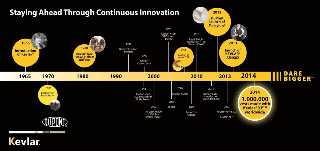 - 2014: Εκσυγχρονισμός της παραγωγής υλικών σκληρής θωράκισης με βάση την τεχνολογία DuPont™ Tensylon™