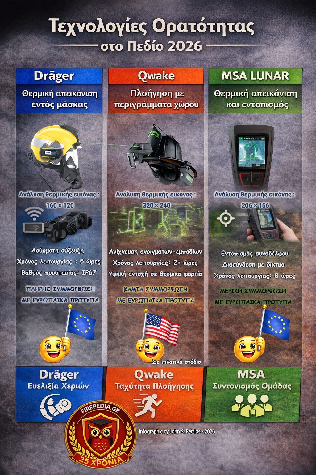 Από την ενσωματωμένη θερμική απεικόνιση και την επαυξημένη πραγματικότητα (AR) έως τα διασυνδεδεμένα οικοσυστήματα δεδομένων, αναλύω τις τρεις επικρατέστερες προσεγγίσεις για να κατανοήσουμε πώς η κάθε μία επαναπροσδιορίζει την ασφάλεια στο πεδίο πυρόσβεσης – διάσωσης.