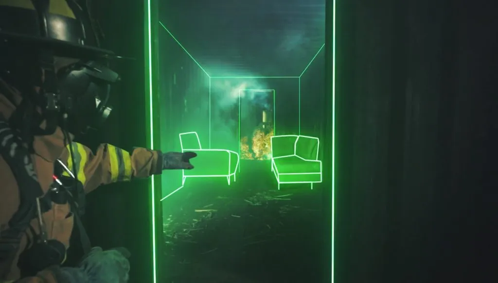 Προσέγγιση «πλοήγηση με ενισχυμένη αντίληψη χώρου»: αντί να βασίζεται μόνο σε θερμές/ψυχρές επιφάνειες, προβάλλει περιγράμματα και δείκτες οριοθέτησης αντικειμένων/ανοιγμάτων, ώστε να διευκολύνεται ο προσανατολισμός μέσα σε καπνό.