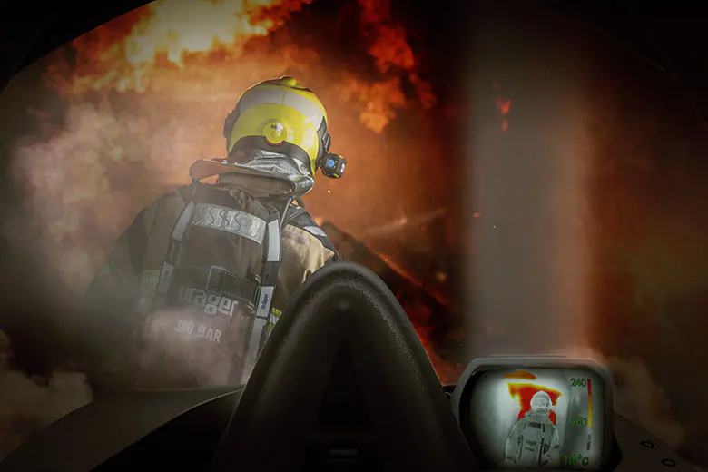 - Dräger UCF FireCore, όταν η προτεραιότητα είναι η συνεχής θερμική πληροφορία εντός οπτικού πεδίου για αναζήτηση και εργασία με ελευθερία χεριών.