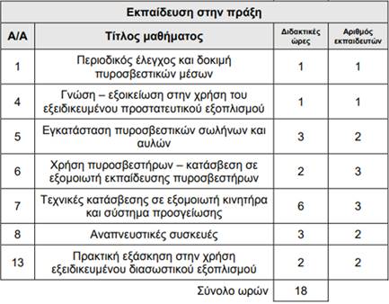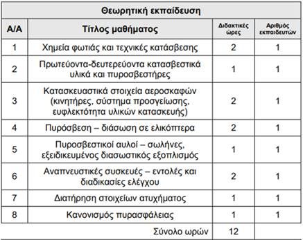 Στον παρακάτω πίνακα, βλέπετε το πρόγραμμα εκπαίδευσης προσωπικού που εμπλέκεται στην πυρασφάλεια ελικοδρομίων και πεδίων προσγείωσης.