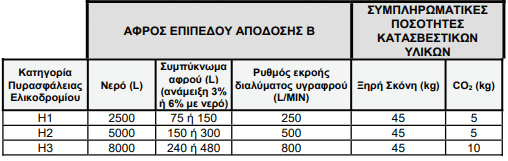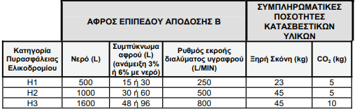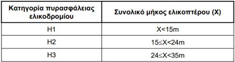 Στον παρακάτω πίνακα, βλέπουμε τις ελάχιστες απαιτούμενες ποσότητες κατασβεστικών υλικών για υπερυψωμένα ελικοδρόμια