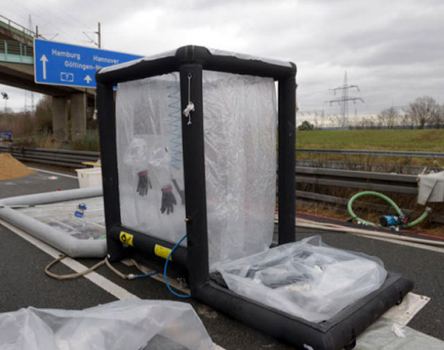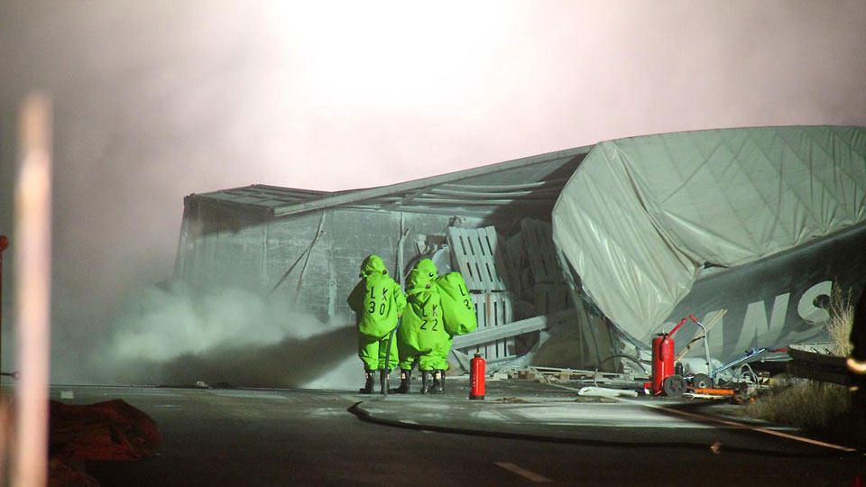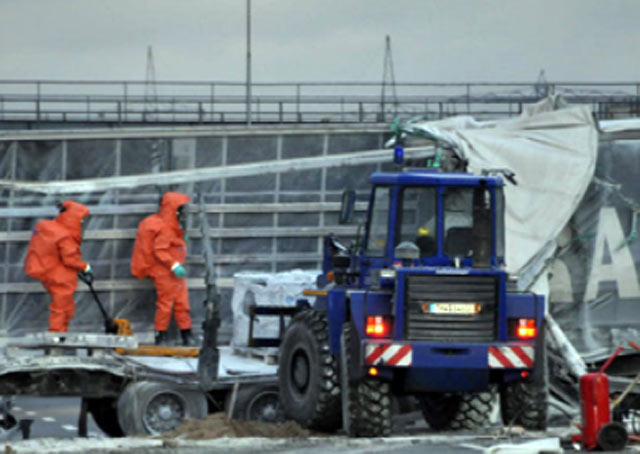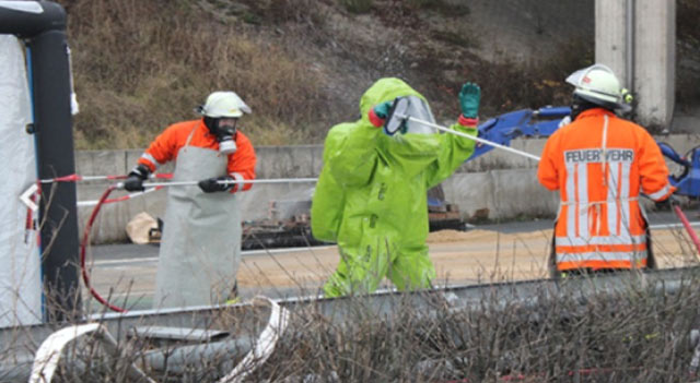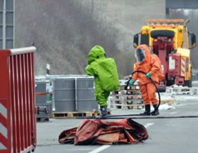 Στην σκηνή του συμβάντος επικρατεί κομφούζιο μεταξύ αστυνομικών και πυροσβεστών καθώς και οι ίδιοι αρχικά δεν γνωρίζουν ακριβώς με τι έχουν να κάνουν και παίρνουν μέτρα κλείνοντας μικρούς δρόμους παράδρομους και γέφυρες που οδηγούσαν στον εθνικό αυτό δρόμο για τρείς ημέρες προσπαθώντας να αποφύγουν την εξάπλωση της τοξικότητας λόγω εισπνοής.