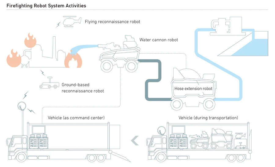 Έτσι ξεκίνησαν διάφορες εταιρίες να ασχολούνται με την ανάπτυξη ρομπότ που θα μπορούσαν να «βοηθήσουν» τον πυροσβέστη στην εργασία του και στην αύξηση της ασφάλειας του.