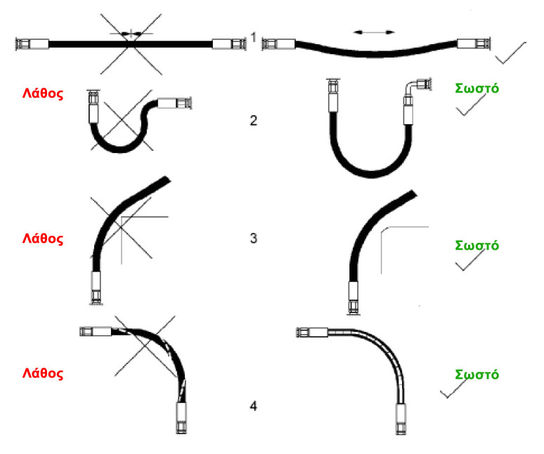 Σε περίπτωση που η σωλήνα Υ.Π. είναι εντός διάρκειας ζωής αλλά έχει παρουσιάσει ορατά σημεία διάβρωσης εξωτερικά επίσης θα πρέπει να αντικατασταθεί. Μεγάλη προσοχή πρέπει να δοθεί κατά την συνδεσμολογία των σωλήνων να ΜΗΝ πάρουν χώμα μέσα καθώς είναι μεγάλος ο κίνδυνος να «μπουκώσει» η σωλήνα με μόνη λύση την αντικατάσταση της. Επίσης πρέπει να “συμπεριφερόμαστε με προσοχή στις σωλήνες υψηλής πίεσης” καθώς λυγίσματα, κακές γωνίες και λάθος προεκτάσεις θα φθείρουν ή θα τις χαλάσουν. Ακολουθούν μερικά παραδείγματα σωστού και λάθους.