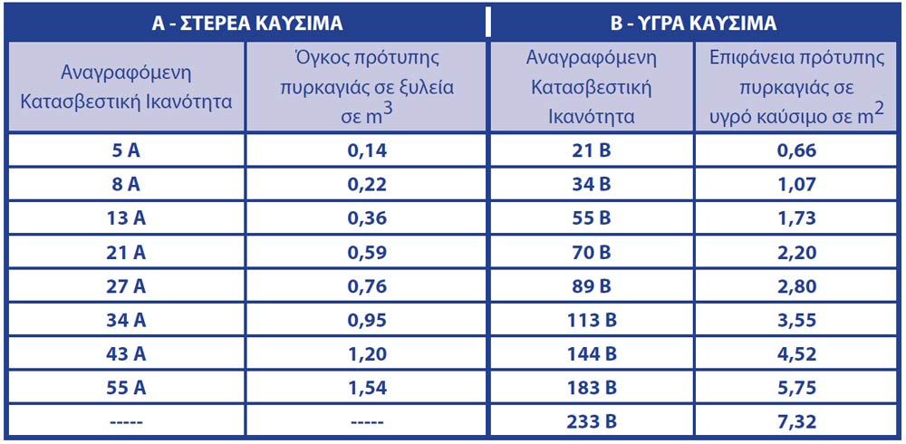 Υπάρχει βεβαίως και η ετικέτα οδηγιών με τα τεχνικά χαρακτηριστικά του πυροσβεστήρα όπου εκεί αναγράφονται οι κατασβεστικές δυνατότητες του πυροσβεστήρας σας που βάσει της κείμενης νομοθεσίας πρέπει να είναι όπως παρακάτω :