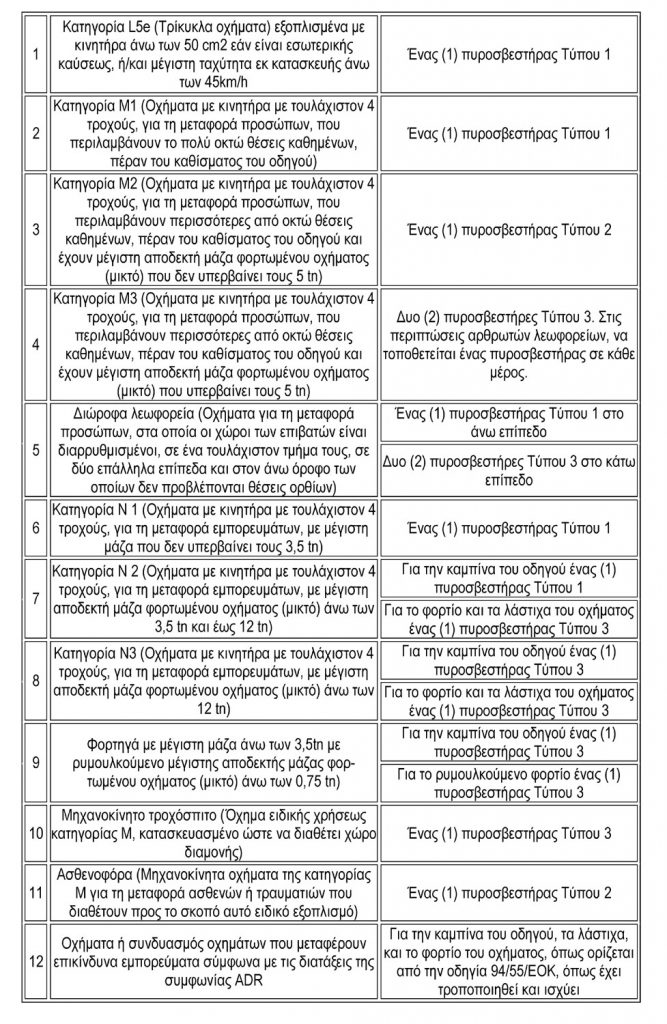 Πολλοί από εμάς είχαμε συνηθίσει στην ιδέα ότι ο πυροσβεστήρας ιδιωτικής χρήσης οχημάτων πρέπει να είναι των 2 κιλών σκόνης ή των 3 κιλών βάσει Νομοθεσίας. Αυτά ανήκουν στο παρελθόν, αφού πλέον η Νομοθεσία ορίζει ότι ο πυροσβεστήρας που πρέπει να έχεις στο όχημα σου πρέπει να έχει τουλάχιστον κατασβεστική ικανότητας 8Α 34Β C, ανεξαρτήτως αν είναι 1 , 2 ή 3 κιλών ξηράς σκόνης ή αφρού.