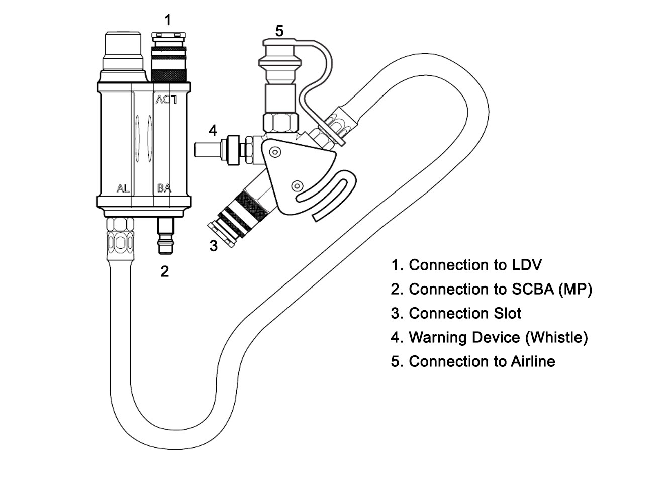 - Automatic Switch-Over : If airline pressure falls below the preset level, the ASV instantly switches to the SCBA cylinder supply.